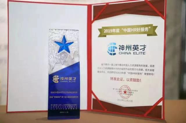 2019年11月15日,第十届中国(北京)人力资源博览会暨2019HR年终盛典于北京富力万丽酒店隆重举行,在1500余位HR的共同见证下,神州英才荣获“2019《中国HR好服务》TOP30品牌机构”奖,“2019咨询培训类十佳HR服务商诚信机构”奖,同期获奖的企业还有猎聘、51社保、爱康国宾等。