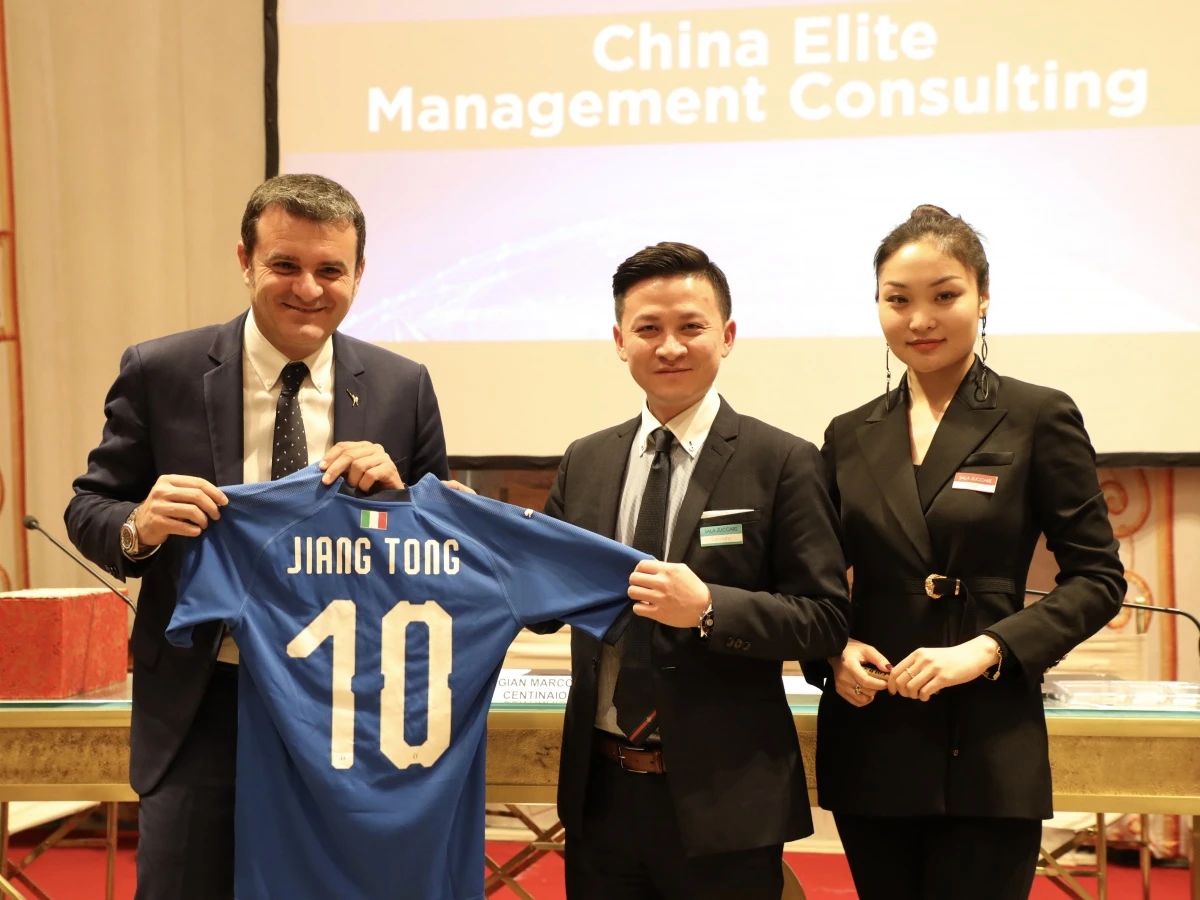 这一行—— 我们访问了意大利参议院,意大利政府内阁成员、农业、食品、林业与旅游政策部长吉安·马尔科·琴蒂纳约(Gian Marco Centinaio)、意大利罗马大学教授、意大利前驻华使馆法律参赞菲德利克(Federico Roberto Antonelli)等意方政要及专家代表出席,双方围绕两国历史、经济、文化、一带一路及中小企业发展问题进行了交流探讨。结束后,互赠礼物,姜桐老师还获赠意大利国家队10号球衣。这份礼物与荣誉,英才人倍感荣幸。