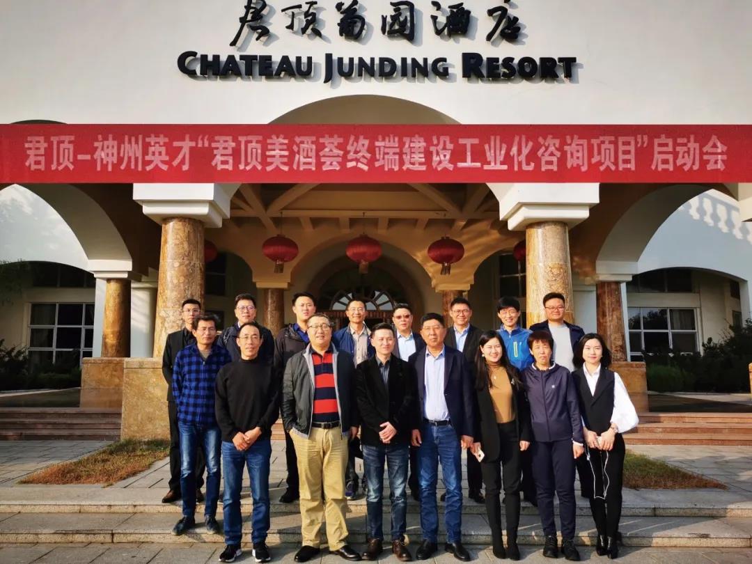 10月19日,君顶—神州英才“君顶美酒荟终端建设工业化咨询项目”启动会在君顶葡园酒店顺利召开,君顶国际酒业有限公司总经理陈云昌率君顶营销管理团队,与神州英才集团总裁姜桐及团队会晤,共同探讨君顶美酒荟终端建设的问题。