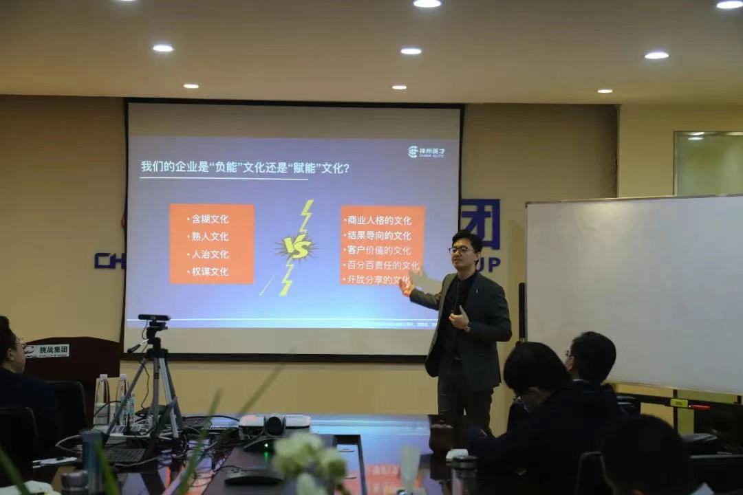 为了更好地满足挑战集团发展新时期、新战略、新模式的工作要求,加强集团组织建设,提高全员工作执行力,挑战集团邀请神州英才集团高级副总裁、高级讲师张敬宽老师于11月30日上午在集团会议室组织开展了《打造赋能组织执行力系统》培训。