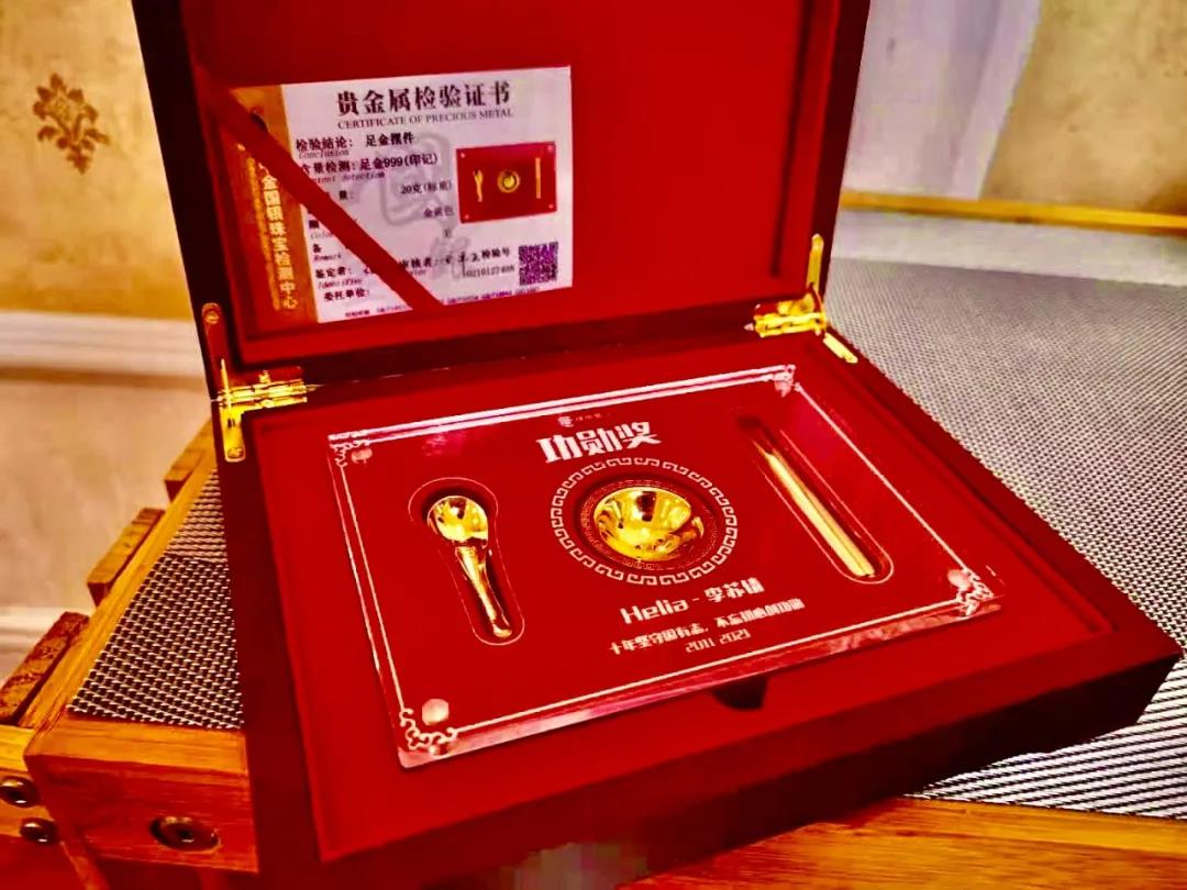 十年“功勋”的纪念,是一副定制的金碗筷,愿你在未来的时光里,和神州英才一起成就更多的伙伴,帮助更多的伙伴收获“金饭碗”。