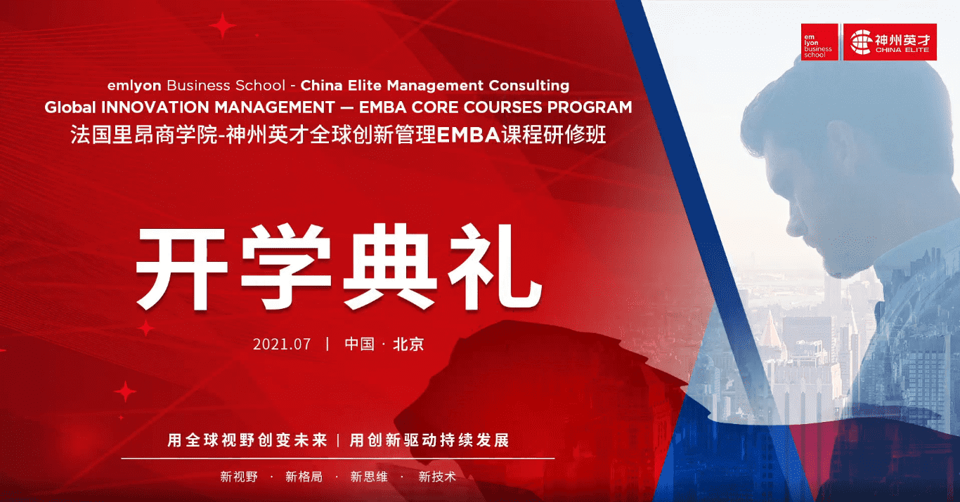 2021年7月27日上午,2021级法国里昂商学院-神州英才全球创新管理EMBA课程研修班开学典礼在北京隆重举行。