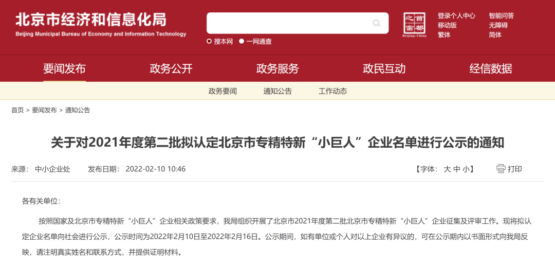 中嘉和信继2021年9月入选“专精特新”中小企业后,于2022年2月成功进阶北京市专精特新“小巨人”梯队。这是对中嘉和信深耕IDC领域十六载的充分肯定,对其“专业化、精细化、特色化、 新颖化”能力的认可,也是中嘉和信自主创新能力和技术研发实力的综合体现。