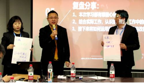 周老师理论分析与情景模拟、应用演练结合的授课方式,生动幽默、妙语连珠的语言表达,赢得在场学员的好评。课程尾声,各小组结合自身工作进行课程复盘,分享了所学收获及心得体会。
