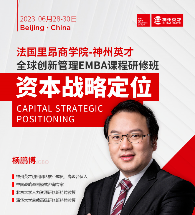 嘉实财富管理有限公司,嘉实旗下财富管理机构,是一家专注为高净值客户提供资产的全球化配置,满足客户多样化、个性化的理财需求的公司。依托强大的实力与背景,凭借领衔金融市场的投研能力,嘉实财富以全球化视野,洞悉判研趋势,根据科学前沿的资产配置模型,以理财顾问的方式,在财富规划、资产配置和财富传承等领域提供全面而个性化的专业服务,帮助客户实现全球化的资产配置和财富的保值增值。企业稳健的质地是资本市场关注的基础。任何公司都应在战略定位明确的前提下,合理设计商业模式,扎实做好供研产销的优化;同时,提供客户价值,提升运营效率,将改善基本面作为核心工作。在产业和资本市场的激烈竞争下,探求独特的战略定位是每位企业家需要“每日三省”的课题。从产业市场的视角看,战略定位更多的是企业给自己设定的一个战略标签,决定了公司的经营方向。战略定位回答“做什么”“不做什么”等根本问题,是决定“赛道”的问题。科学的战略定位是“可做”(外部环境)、“能做”(资源和能力)、“想做”(使命和愿景)、“该做”(社会责任)四者的结合。6月28日,法国里昂商学院-神州英才全球创新管理EMBA课程研修班游学之旅即将开启!访学中国财富管理行业领军者—嘉实财富,探秘资本风向,为企业经营提供借鉴。6月29日-30日,为期两天的课程,将由神州英才创始团队核心成员、高级合伙人,中国战略盈利模式咨询专家,北京大学人力资源研修班特聘教授,清华大学总裁高级研修班特聘教授-杨鹏博讲解,共话新时代下民营企业的资本战略定位。